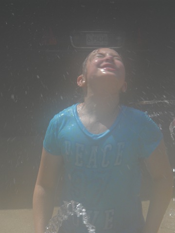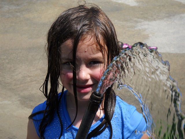 On Thursday, it was over 100 degrees outside – in the shade. The girls were playing in the driveway with the water hoses, just trying to stay cool while they were outside for a bit.