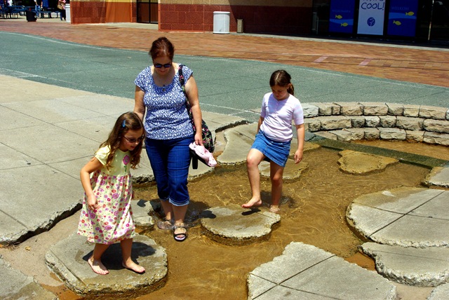 They have a “stream” that runs between the two Aquarium buildings and all the kids “swim” and splash in the water. I couldn’t resist myself given that it was 96 degrees with 100% humidity.IMGP3015This is another one SuperMan did. I love it.         IMGP3013