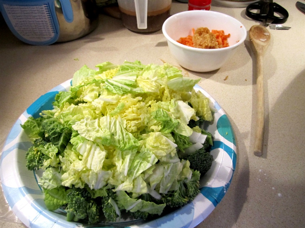 I put broccoli, carrots, garlic, Napa cabbage, onion and bell peppers in ours.