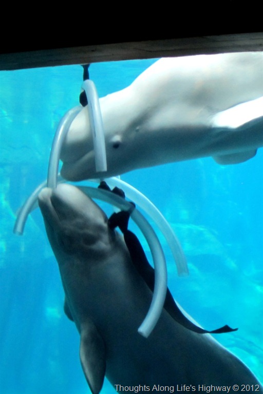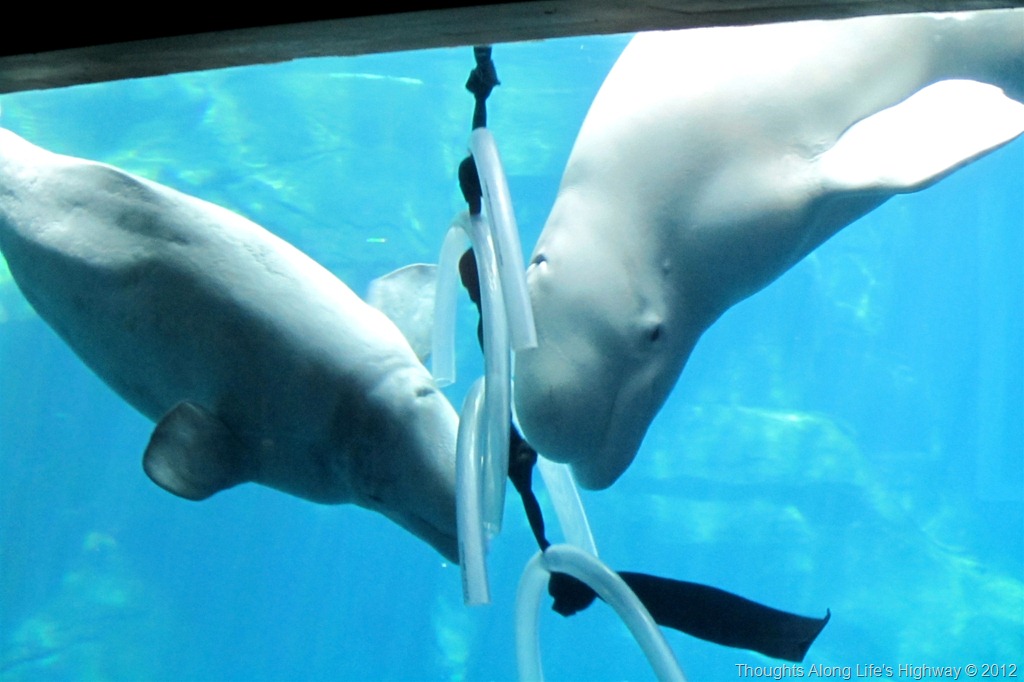We also spent a lot of time watching the beluga whales. They have four at the aquarium – two males and two females. All are young (even though they are also huge) and were very active and were extremely entertaining to watch.