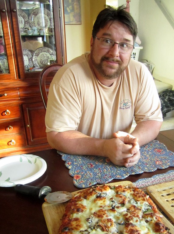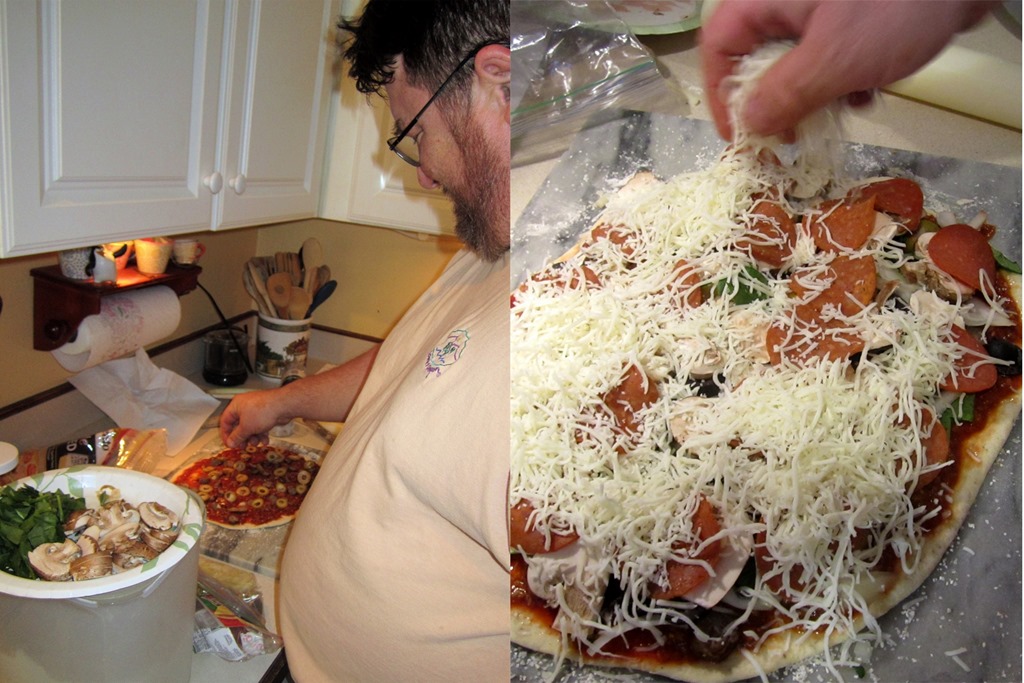 ^^ SuperMan making his monster pizza with 45 toppings. I swear it weight 10 pounds! ^^
