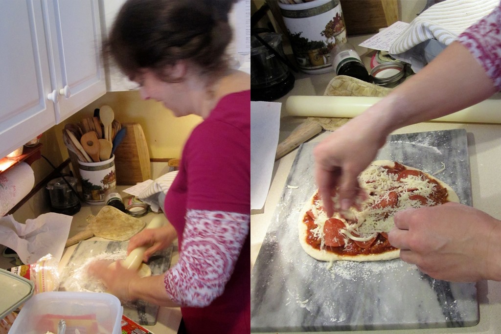• We usually get two meals (at least) out of this pizza-making session. One the night we make them and then one for lunch or supper a few days later. And it’s WAY cheaper than takeout pizza (and SO MUCH tastier!)