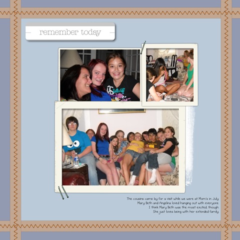 One thing I realized last night, as I was driving home from my knitting night out, was that this could quickly become a new hobby of mine. The knitting circle is a lot like the crop – the social aspect anyway – minus all the extra luggage. I enjoyed the time I spent relaxing, chatting with and getting to know these ladies. And the tactile part of knitting was very soothing to me. Which is something I’m missing now that so much of my scrapbooking is digital.