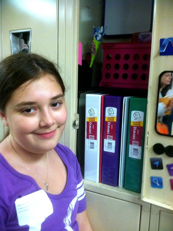 The weekend was a busy one – Saturday was “boot camp” for Big Girl – her first foray into the world of Middle School. We got to meet her teachers and get her schedule – and more importantly (to her) – load up her locker!