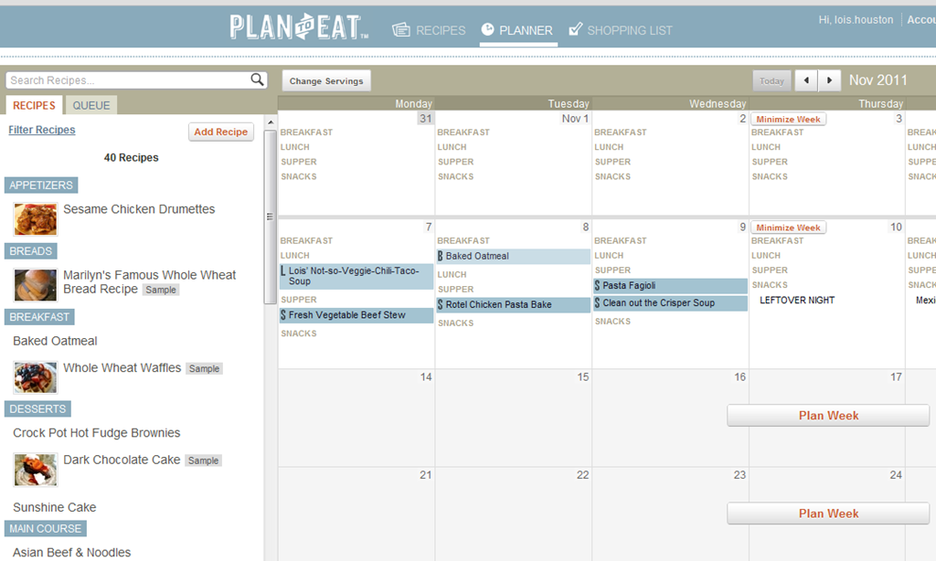 When the girls were little it helped me to get a grip on what nights I had time to cook something more involved and what nights were “grab and go” kind of nights due to dance and other extracurricular activities. It still works that way now, even though the girls are practically grown – especially now, actually – because we ALL have busy schedules these days. SuperMan teaches two nights a week, I have a class one night a week, one girl is working, one girl has theater activities several nights a week, both girls babysit, the list goes on and on.
