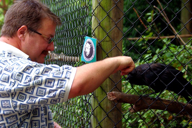 The other neat thing was, surprisingly, this crow (of all things) . He had a fixation with SuperMan and kept sticking his head out of the cage and looking at SuperMan like he wanted him to do SOMETHING. Finally, SuperMan decided to try scratching his head (nothing like risking a big bite from a big beak).