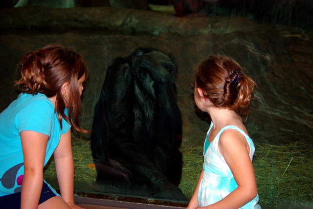 He came right up to the window to see the girls and had a (mute) conversation with them through the glass. It’s a little eerie to see so much intellect in his eyes when he looks at you. Makes you wonder what he is thinking and what he thinks about all this zoo stuff.